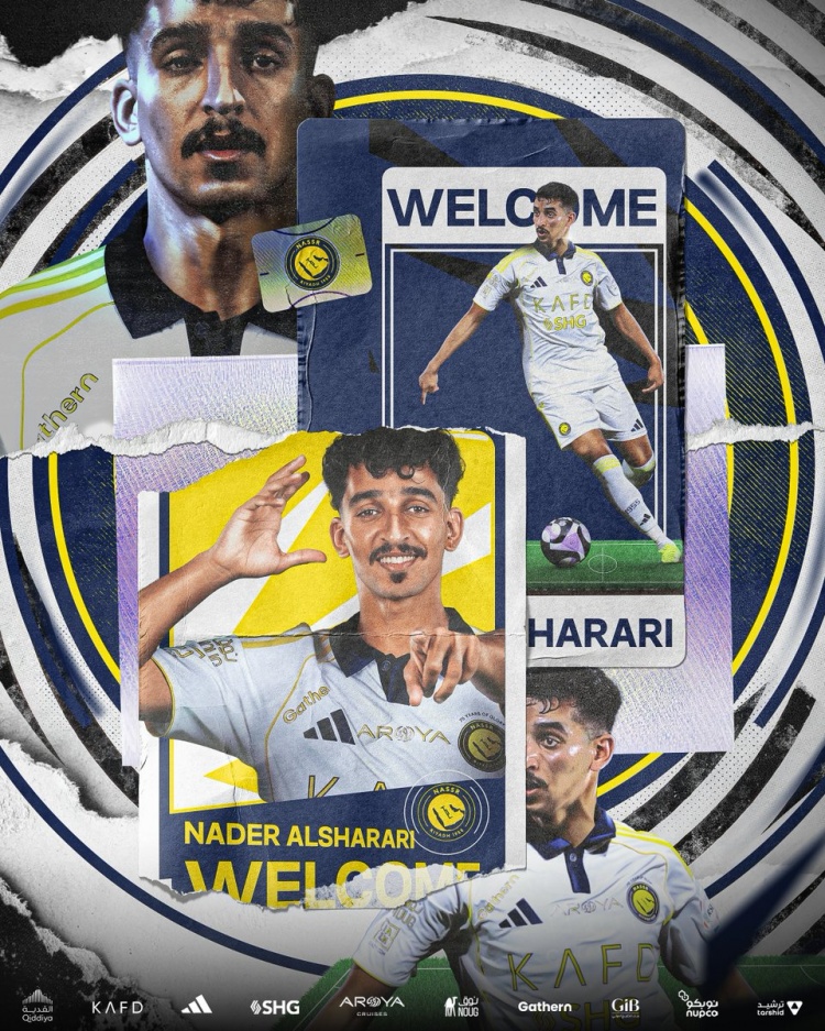 7月16日讯 利雅得胜利官宣,俱乐部免签纳德尔-阿尔沙拉里,双方签下三年合同。